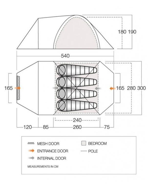 Linked-In Groundsheet – Easy to clean groundsheet that can be attached or detached from the living area. Simply roll under the bedroom area when not required
